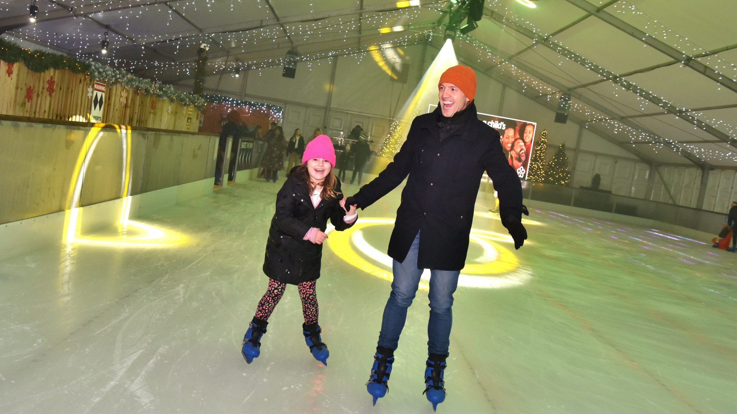 Same great ice rink, same great price, with loads more happening around it too. Skate around the fantastic open rink, with twinkling lights under the ice and loads of great events throughout the Christmas season. Stroll through the market outside, grab a hot chocolate or drink at the bar, and wander into the ice rink, which is open to all for the first time, with arcade machines all round the edge, a spectator area, street curling rink and self-service skate hire.