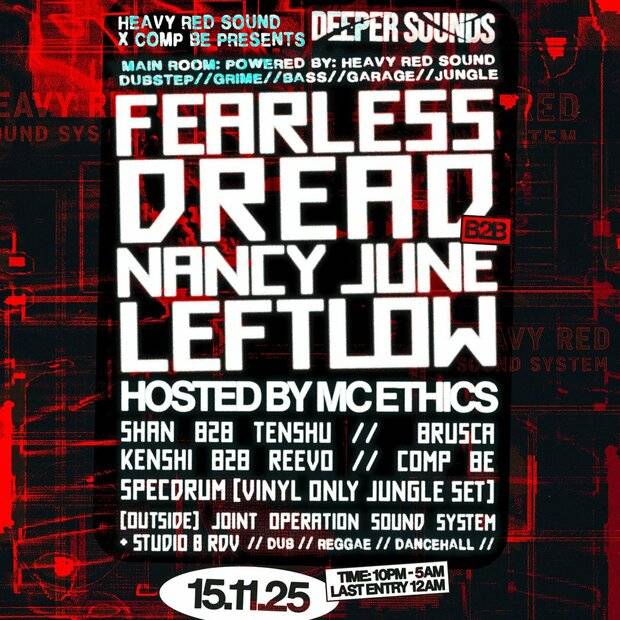 If You Were At The Last One Expect Double The Amount Of Sound For This. We Will Be Digging Deeper Into The Underground Sound System Culture With A Trio Of Heavyweights Fearless Dread, Nancy June & Leftlow Supported With Rising Local Talent And Further A Field Connecting The Midlands Together Through Soundsystem Culture Hosted By Mc Ethics.